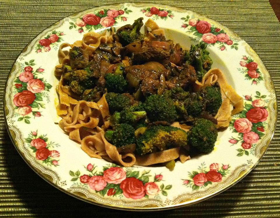 Mushroom Bison Stir-Fry (with homemade heirloom Einkorn noodles)